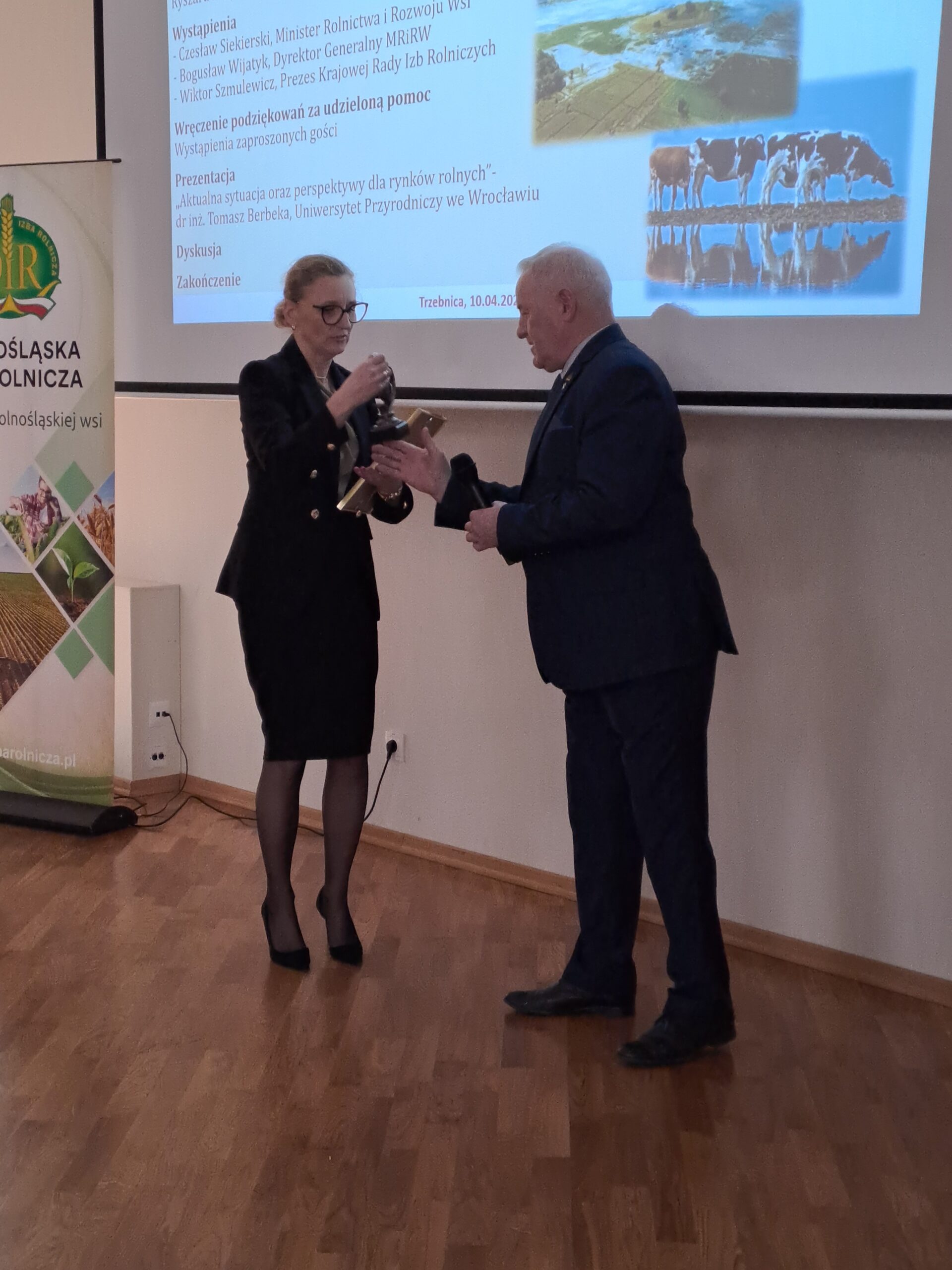 10 kwietnia 2025 r. w Trzebnicy odbyło się posiedzenie przedstawicieli samorządu rolniczego z całej Polski. Podczas spotkania Ryszard Borys, prezes Dolnośląskiej Izby Rolniczej oraz Jerzy Sewielski, prezes Izby Rolniczej w Opolu, wręczyli symboliczne podziękowania za wsparcie producentów rolnych poszkodowanych w minionej powodzi. W imieniu Towarzystwa Ubezpieczeń Wzajemnych „TUW” statuetkę odebrała Joanna Klimas-Zajączkowska, dyrektor Dolnośląskiego Biura Regionalnego.